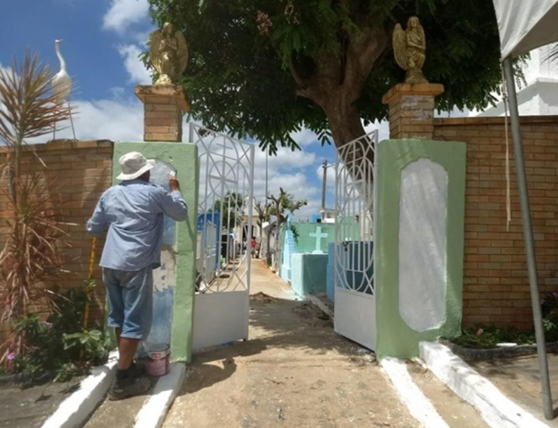 A Prefeitura de Serra Redonda, realizou na manhã desta terça-feira (31) os últimos ajustes no Cemitério Municipal para receber os visitantes no Dia de Finados, celebrado nesta quarta-feira, (02/11). Funcionários da Secretaria de Infraestrutura, finalizaram a limpeza geral, a pintura das instalações e a instalação dos novos bancos e jarros decorativos que estavam quebrados e velhos. Os serviços, segundo o secretário de Washington Junior, aconteceram nas partes internas, externas e no entorno, ALÉM DA INSTALAÇÃO DE CÂMERA DE SEGURANÇA, algo tão solicitado pelos moradores.